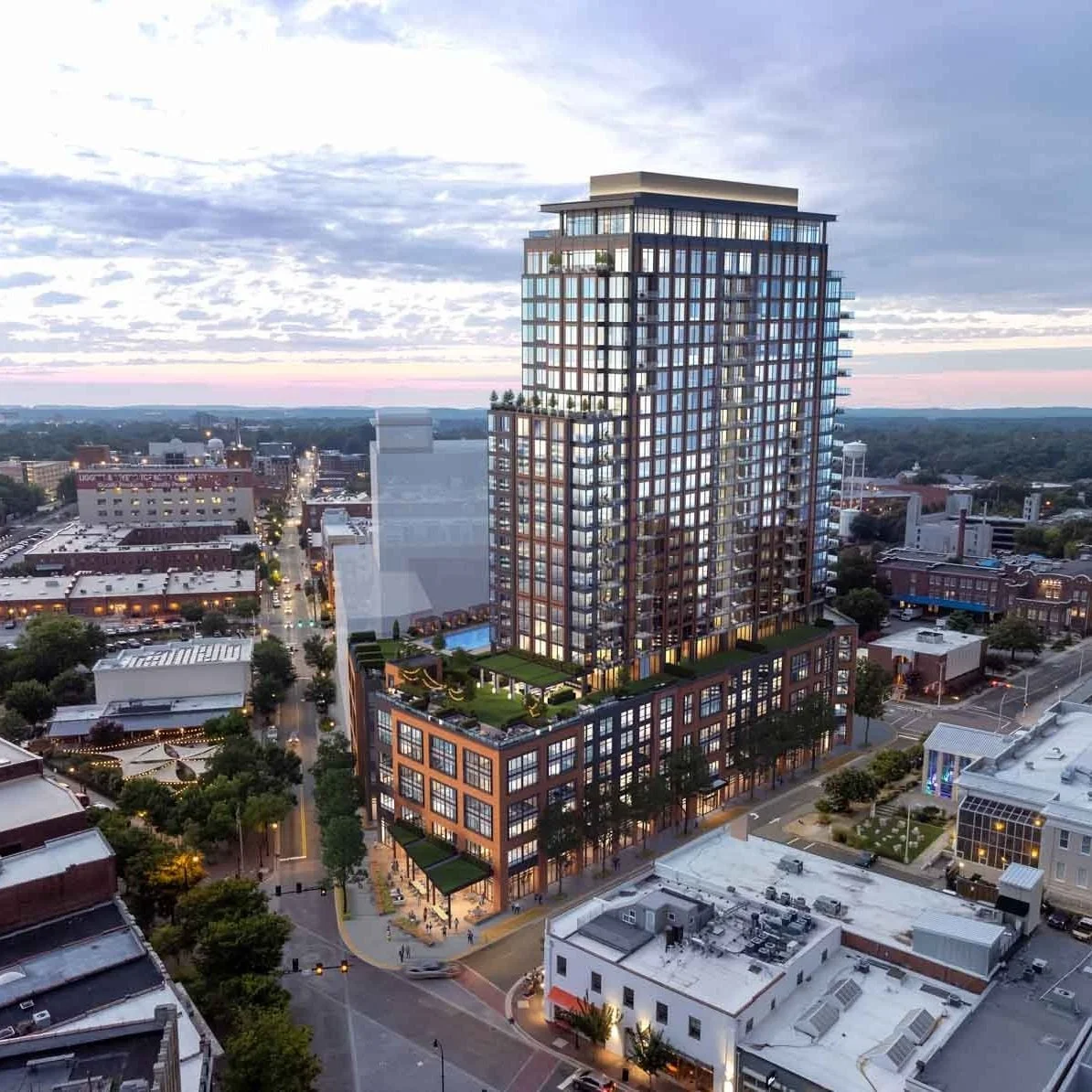 Concrete is being poured for The Novus’ 19th floor - the first of the condominium levels! The concrete and sleeving installation is taking place through the 19th floor. The face of the building is taking shape as the precast brick is being installed along the facade. Ductwork installation is underway on the first 14 floors as well. The next major step is the commencement of the glass installation in the building. We can't wait to see the beautiful sunsets reflecting in the windows in downtown Durham!