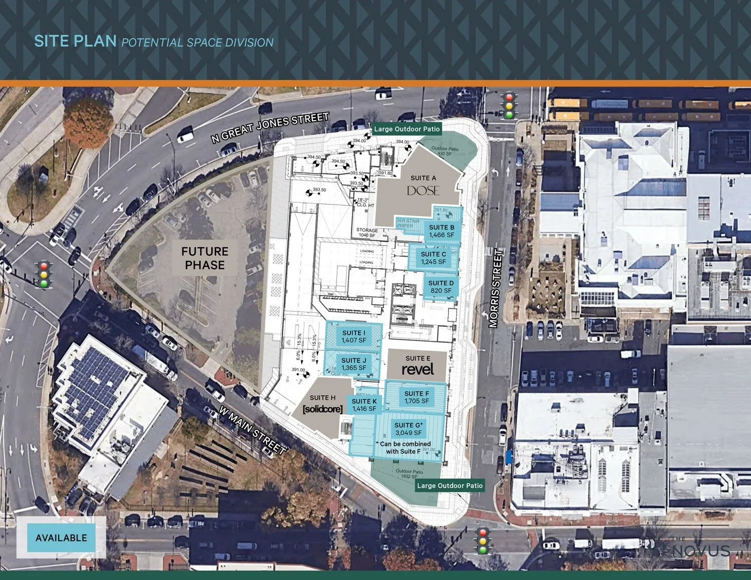 The Novus’ ground-floor retail offers an unmatched opportunity for businesses to connect with the fast-growing, top-ranked Durham community. These distinctive spaces are prominently situated in the popular Five Points District, whose eclectic dining, entertainment, and shopping options regularly attract city residents and visitors to the neighborhood.